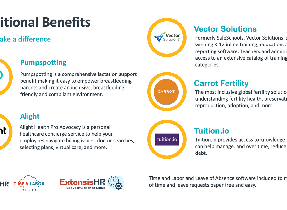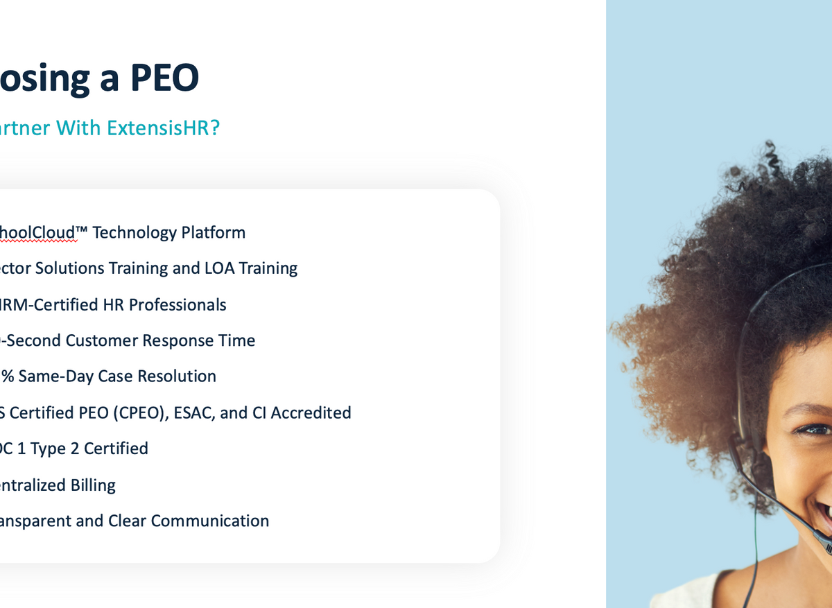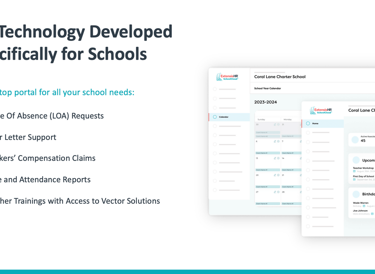 ExtensisHR's SchoolCloud™ is an all-in-one HR and technology solution designed specifically for schools, including charter, private, parochial, and independent schools. It aims to simplify HR operations, enabling educators to focus on student and staff growth by streamlining tasks like compliance, benefits, training, and more.