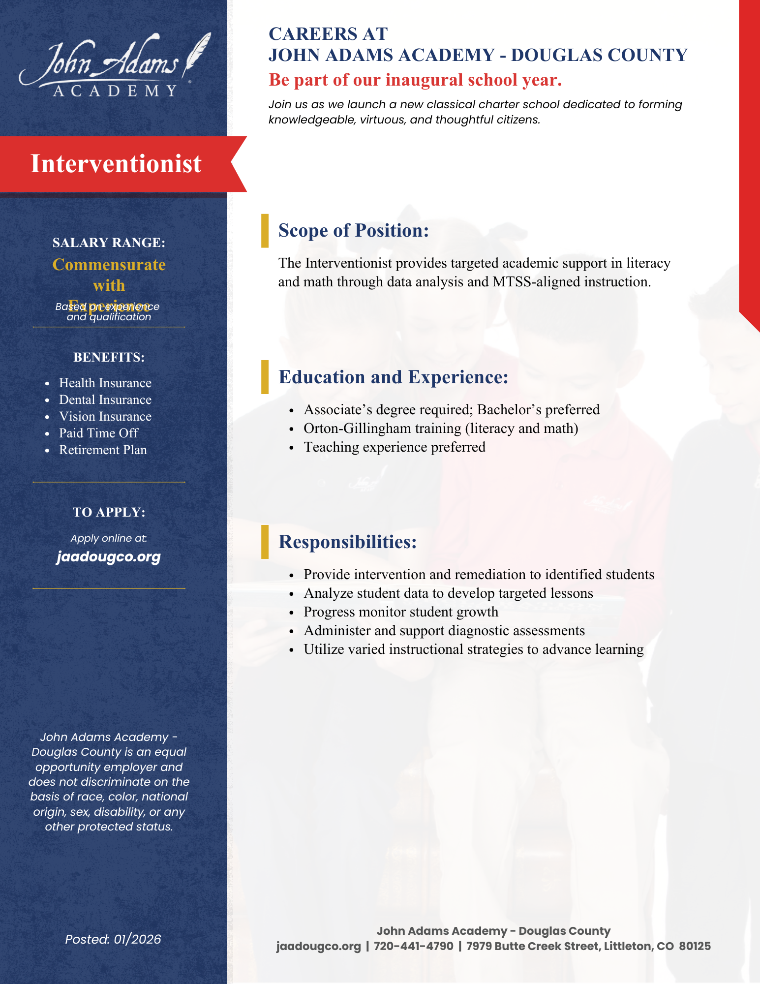 The Interventionist at John Adams Academy will:
