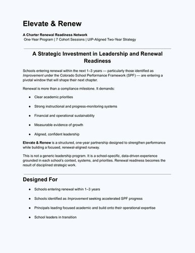 Elevate & Renew: Full Program Brief